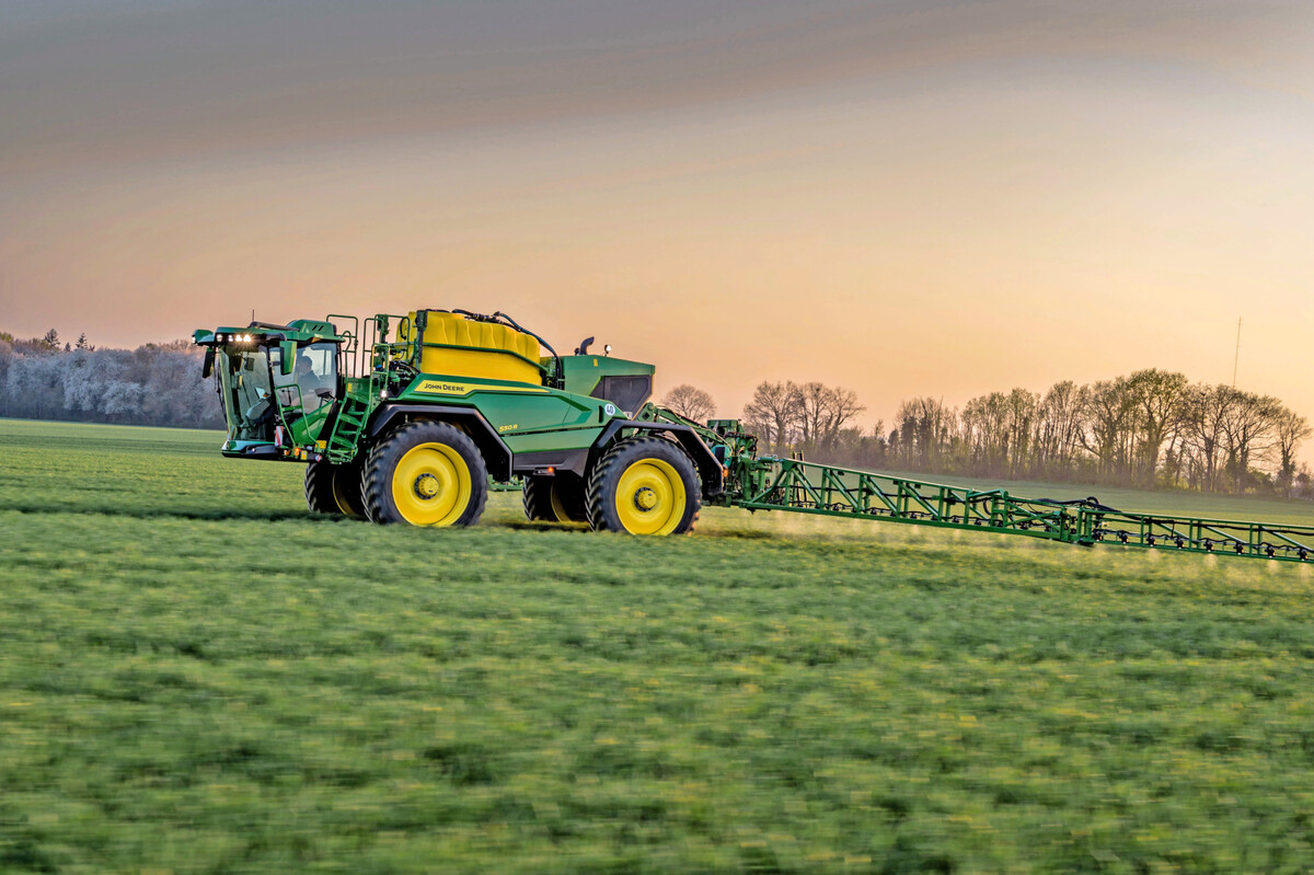 Die Kombination aus Powr-Spray, Exact-Apply und Boom-Trac Pro 2 liefert bis zu 98 Prozent Genauigkeit in Spritzanwendungen, berichtet John Deere. Powr-Spray verfügt über eine direkte Mengensteuerung der Spritzpumpe, welche die Ausbringung in weniger als drei Sekunden von Minimum auf Maximum umstellen könne. Exact-Apply biete eine Einzeldüsenschaltung und Pulsweitenmodulation. Die automatische Kurvenkompensation stelle auch bei Kurvenfahrt eine konstante Ausbringmenge sicher. Boom-Trac Pro 2 ist mit fünf Höhensensoren für das Gestänge und einem Trägheitsmessgerät ausgestattet, das die korrekte Position des Spritzgestänges sicherstelle.
