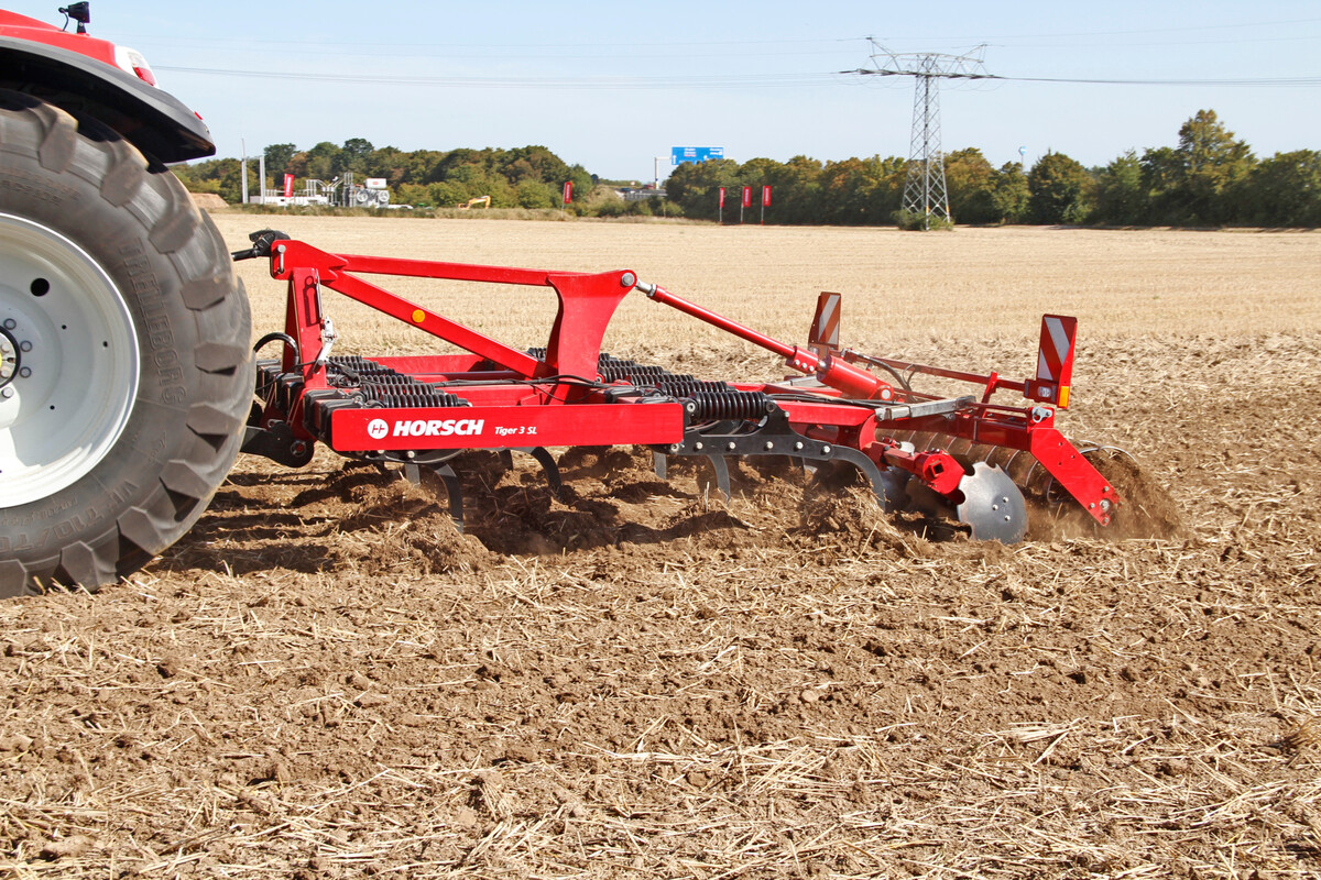 Mit dem Tiger SL erweitert Horsch die Reihe der gezogenen Modelle um eine kompakte Version für den Dreipunktanbau. Die Maschine basiert auf dem Tiger-Konzept und richtet sich an Landwirte, die Wert auf die charakteristische, intensive Durchmischung der Tiger-Baureihe legen, zugleich aber eine wendigere Variante benötigen, heißt es vom Hersteller. Der Tiger SL hat einen kompakten zweibalkigen Rahmenaufbau und einen Strichabstand von 23 Zentimetern. Dieser soll auch bei großen Mengen an Ernterückständen eine zuverlässige Durchmischung gewährleisten. Der Grubber ist für Schlepperleistungen ab 240 PS ausgelegt und kann mit dem MulchMix-Scharprogramm ausgestattet werden.