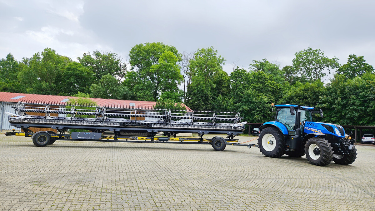 Die Thüringer Agrartechnik und Maschinenbau GmbH (TAM) stellt mit der Quattro-Serie eine komplette Baureihe an Schneidwerkswagen für Schneidwerke von 3,60 bis 15,20 Meter bereit. Kern der Baureihe ist ein durchgehender geschweißter Hauptrahmen, der für hohe Stabilität bei gleichzeitig geringem Eigengewicht sorge. Je nach Modell sind die Schneidwerkswagen mit Auflauf- oder Druckluftbremse ausgestattet und erreichen zulässige Gesamtgewichte von bis zu zwölf Tonnen. Eine Besonderheit sei die Allradlenkung, die in mehreren Modellen vorhanden ist und eine hohe Wendigkeit bei engen Zufahrten oder Kreisverkehren ermöglichen soll.