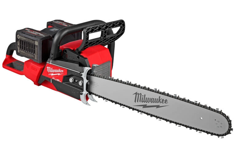 Milwaukee erweitert mit der M18 F2CHS50-802 sein Sortiment an Akku-Kettensägen. Sie erreicht in Hartholz eine Kettengeschwindigkeit von 14,3 Metern pro Sekunde und soll damit vergleichbar mit einer 60 Kubikzentimeter-Benzin-Kettensäge sein. Der bürstenlose Motor liefert ein maximales Drehmoment von 9,5 Nm. Mit einer Leistung von bis zu 5,8 PS und einem 50 Zentimeter langen Schwert soll sich die Säge sogar für größere Fällarbeiten eignen. Das Gewicht gibt Milwaukee mit neun Kilogramm an, inklusive zweier Akkus.