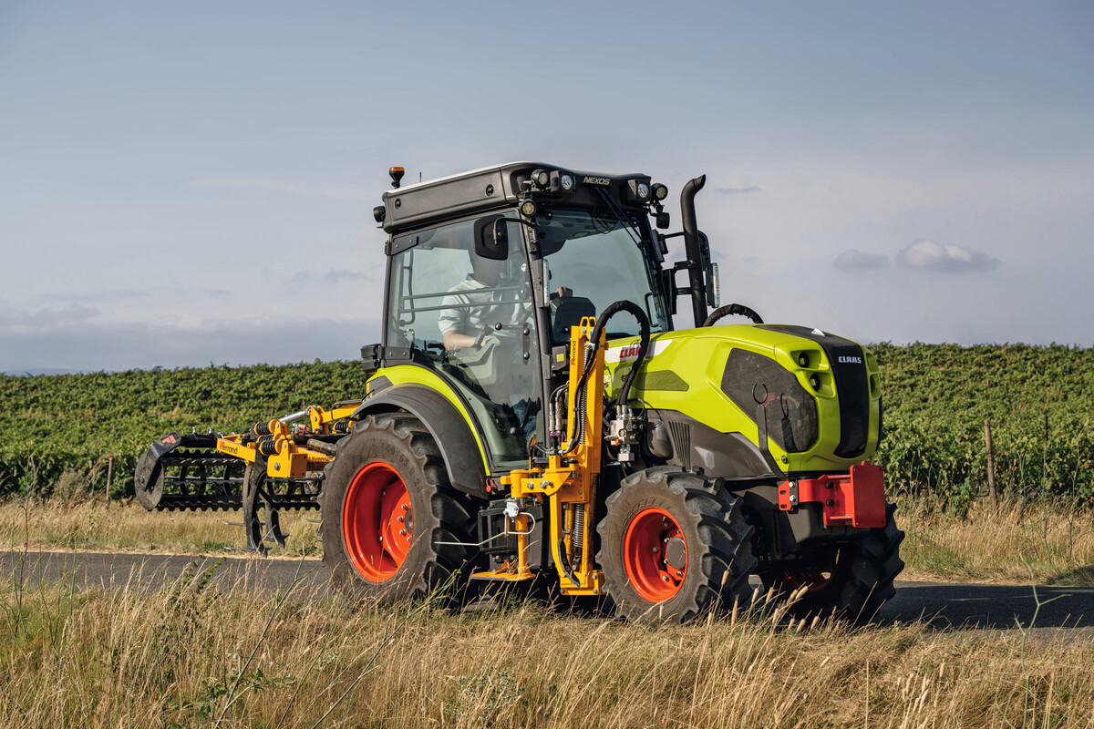 Mit vier neuen Nexos 2 Cmatic-Modellen stellt Claas seine ersten Schmalspurtraktoren mit stufenlos-leistungsverzweigtem Getriebe vor. Sie sind in vier Varianten mit minimaler Außenbreite von 1,0 bis 1,55 Metern erhältlich. Auch die Multifunktionsarmlehne wurde neu entwickelt. Der 3,6 Liter große Stage-V-Vierzylindermotor kommt von FPT und hat zwischen 85 und 120 PS Maximalleistung. Das Ölwechselintervall liegt bei 600 Betriebsstunden. Die Front- und Heckkraftheber sollen rund drei Tonnen heben. Bis zu 18 elektrohydraulisch gesteuerte Hydraulikanschlüsse sind möglich. Auch die Nutzung von Mittelachsanbaugeräten ab 1,70 Meter Reihenweite sei nun gegeben. Die Vorderachse ist gefedert und mit einer dynamischen Lenkung für reduzierte Lenkradumdrehungen ausgestattet. Vier Zapfwellengeschwindigkeiten stehen zur Verfügung. Ebenso eine Kabine mit Kategorie 4-Filtersystem sowie Isobusanschlüsse. Optional gibt es eine Heckkamera. Die Höchstgeschwindigkeit von 40 Kilometern pro Stunde werde bei 1530 Motorumdrehungen pro Minute erreicht.