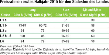 Stabile Erlöse sollten zum Einschlag anregen Mit guten Holzpreisen in das Jahr 2015 gestartet