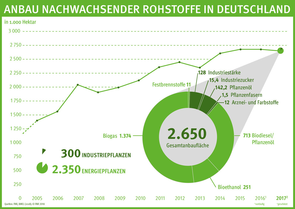 Die Fachagentur Nachwachsende Rohstoffe e. V. (FNR) erhebt die Anbauzahlen jährlich im Auftrag des Bundesministeriums für Ernährung und Landwirtschaft.