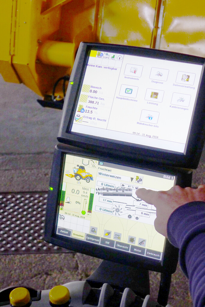 Neues gibt es auch bei den CR-Mähdreschern für die Saison 2019. Die CR Revelation-Baureihe ist jetzt mit dem optinoalen, proaktiven automatischen Mähdreschereinstellsystem IntelliSense ausgestattet. Es unterstützt den Fahrer bei der schwierigen Aufgabe, eine maximale Durchsatzleistung bei geringstmöglichen Körnerverlusten und Bruchkornanteilen aufrechtzuerhalten. Das IntelliSense-System beinhaltet vier Druschstrategien: Verlustbegrenzung, optimale Kornqualität, maximale Schlagkraft und konstante Durchsatzleistung. Die patentierten Siebkastensensoren liefern hochpräzise Druckmesswerte. Anhand dieser Sensorwerte passt das proaktive System ständig die Twin Rotor-Drehzahl, den Anstellwinkel der Leitschienen, die Gebläsedrehzahl und die Öffnung des Vorreinigungssiebs sowie des Ober- und Untersiebs an, um das gewünschte Ergebnis zu erhalten. Die patentierte automatische Leitschienenverstellung verbessert die Rotoreffizienz ohne Beeinflussung der Dresch- und Abscheideeinstellungen, was in Kraftstoffeinsparungen und einer höheren Gesamtleistung resultiert.