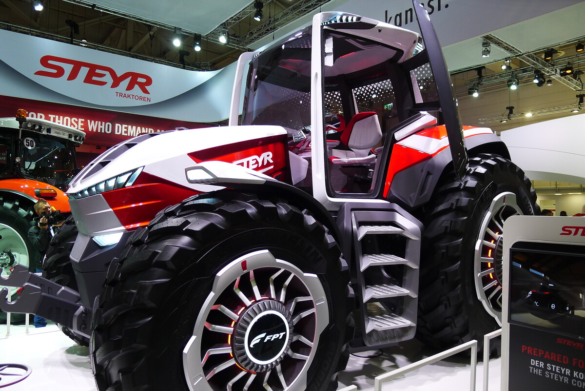 Der intelligente Allradantrieb des Konzepttraktors sorgt für optimale Leistungsübertragung. Je nach Bedarf werden die vier Elektro-Radnabenmotoren mit Energie von der Batterie oder dem Generator versorgt. Die individuelle Ansteuerung ermöglicht eine hohe Traktion und präzises Lenkverhalten.