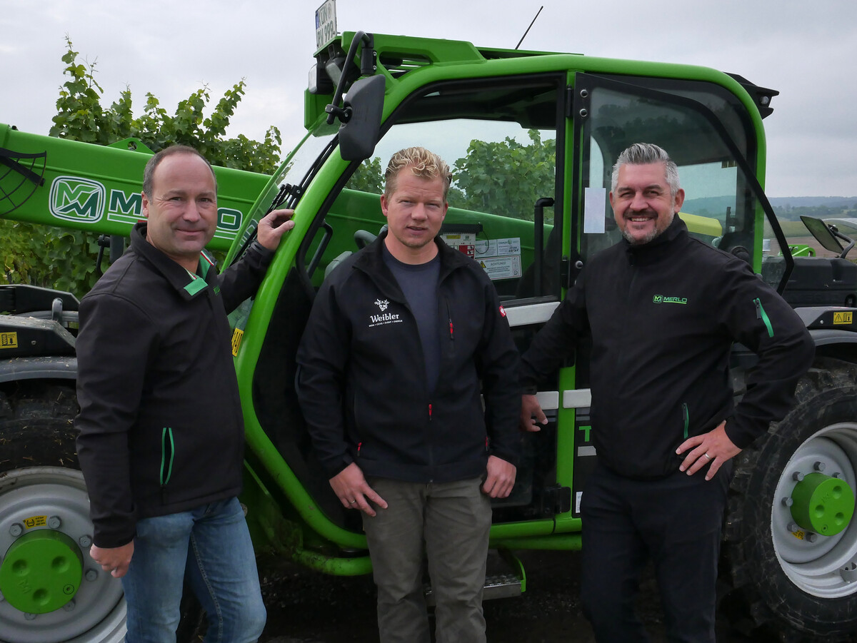 Weinbauer Christof Weibler schätzt die Handarbeit seines Berufes. Technik setzt er rationell ein. Seit über 20 Jahren vertraut sein großer Mischbetrieb auf kompakte Merlo Teleskoplader. Der Merlo muss sieben Tage die Woche laufen und bringt es auf 1700 h im Jahr. „Der regionale Merlo Partner ´Staplerwelt´ ist da, wenn wir ihn brauchen. Den Einsatz belohnen wir mit Markentreue“, sagt Weibler.