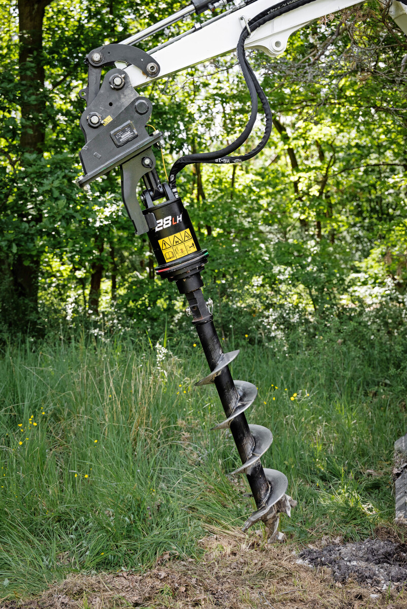 Die Hydraulikschläuche werden über abgewinkelte, oben montierte Anschlüsse geführt. Der kompakte, integrierte Motor reduziere nicht nur Größe und Gewicht der Einheit, sondern minimiere auch die Anzahl an Bauteilen und potenziellen Leckstellen. Da die komplette Antriebseinheit der Bohrschnecke ins Bohrloch folge, lasse sich – laut Hersteller – eine um über 30 Zentimeter größere Bohrtiefe erzielen.