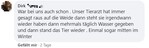 Dazu sollte man verschiedenes Futter anbieten und darauf achten, dass immer Wasser da ist. Eine Kuh schmeißt einen Wassereimer auch mal um. Dann muss man ihn eben wieder aufstellen. Das ist lästig, aber wichtig.