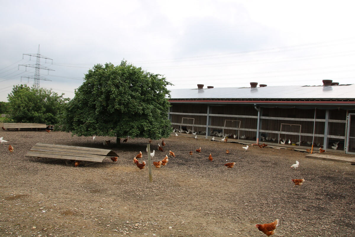 Nicht nur die Tiere erzeugen Wärme. Auch bei der Umsetzung des Mists, auf dem die Tiere laufen, wird Wärme frei. Daher sollte morgens regelmäßig nachgestreut werden, um die Einstreumatte abzudecken. Ein Problembereich ist oft der Auslauf. Er sollte Möglichkeiten zum Unterschlüpfen und zum Ausruhen im Schatten bieten. Bepflanzung ist da eine gute Möglichkeit. Auch mit Reutern, Dächern oder Netzen kann die Fläche strukturiert werden, die Tiere können sich im Auslauf verteilen und finden Schutz vor der Hitze und vor Feinden aus der Luft.